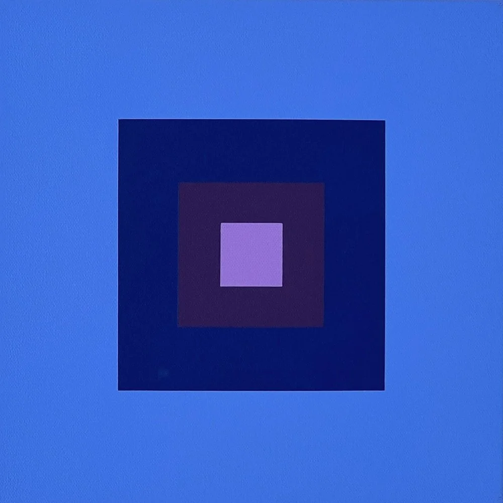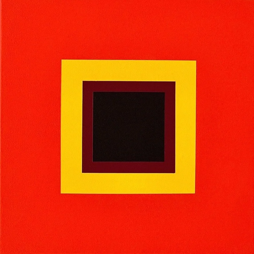 Each of the nine works in this series follows this same structure, a symmetrical square-within-square form, yet each represents a different flower, carefully chosen. Not all flowers qualify. Only those with a defined and recognisable colour palette in the collective imagination are permitted into this lexicon.